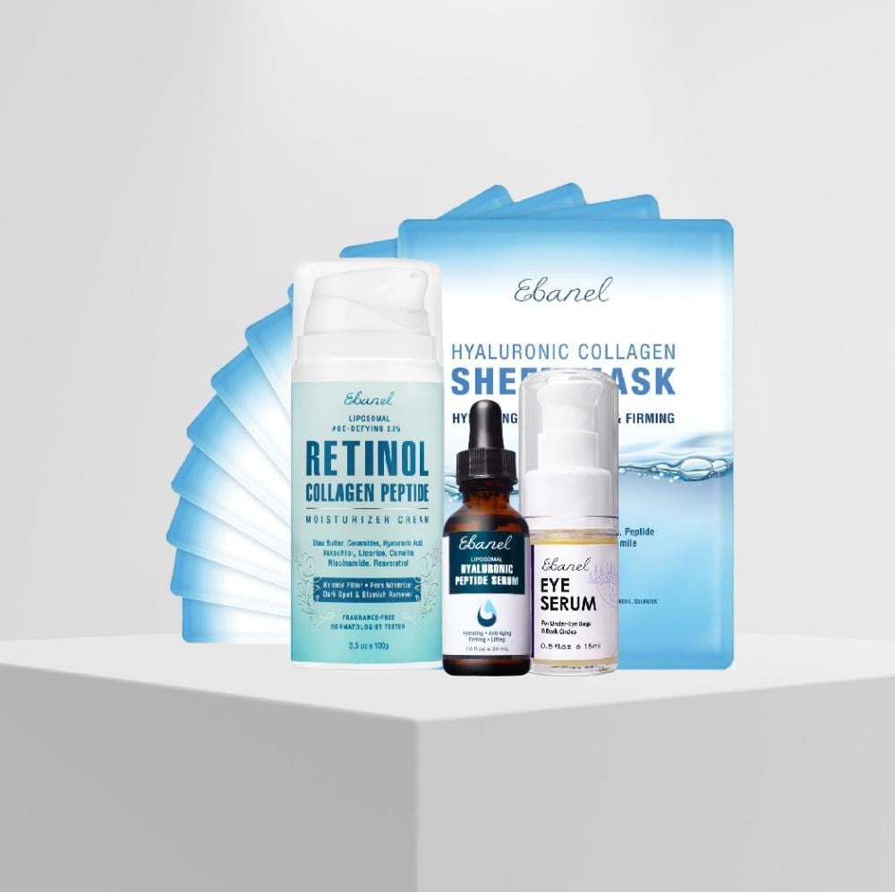 - عدد المنتجات: 4 عناصر تشمل سيروم ريتينول,كريم ريتينول,سيروم هيالورونيك، و10 أقنعة فردية.